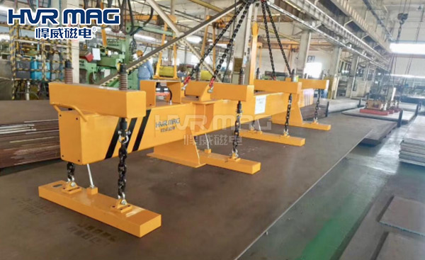 在路橋的建設過程中,鋼板搬運是再平常不過的現象了,施工現場的鋼板不僅數量巨多,而且尺寸規格各不相同,工程機械商以前采用傳統的鋼絲繩、鋼板鉗和掛鉤等機械設備搬運鋼板時,需要工人將一張一張鋼板固定掛牢,這嚴重影響了車間的吊裝效率,而且極其不安全。為了解決這一難題,不少企業可謂是煞費苦心,從網絡上惡補鋼板吊裝的多種方式,并從中找到了吊裝鋼板的智能設備——電控永磁起重器。