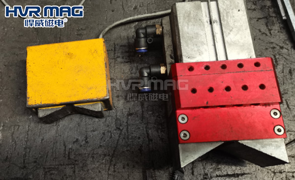 在抓取小型,異性圓棒時,電永磁可以通過仿形加工,配合視覺,可以抓到邊緣位置的產品,不像氣動永磁和普通抓手有很嚴重的干涉。