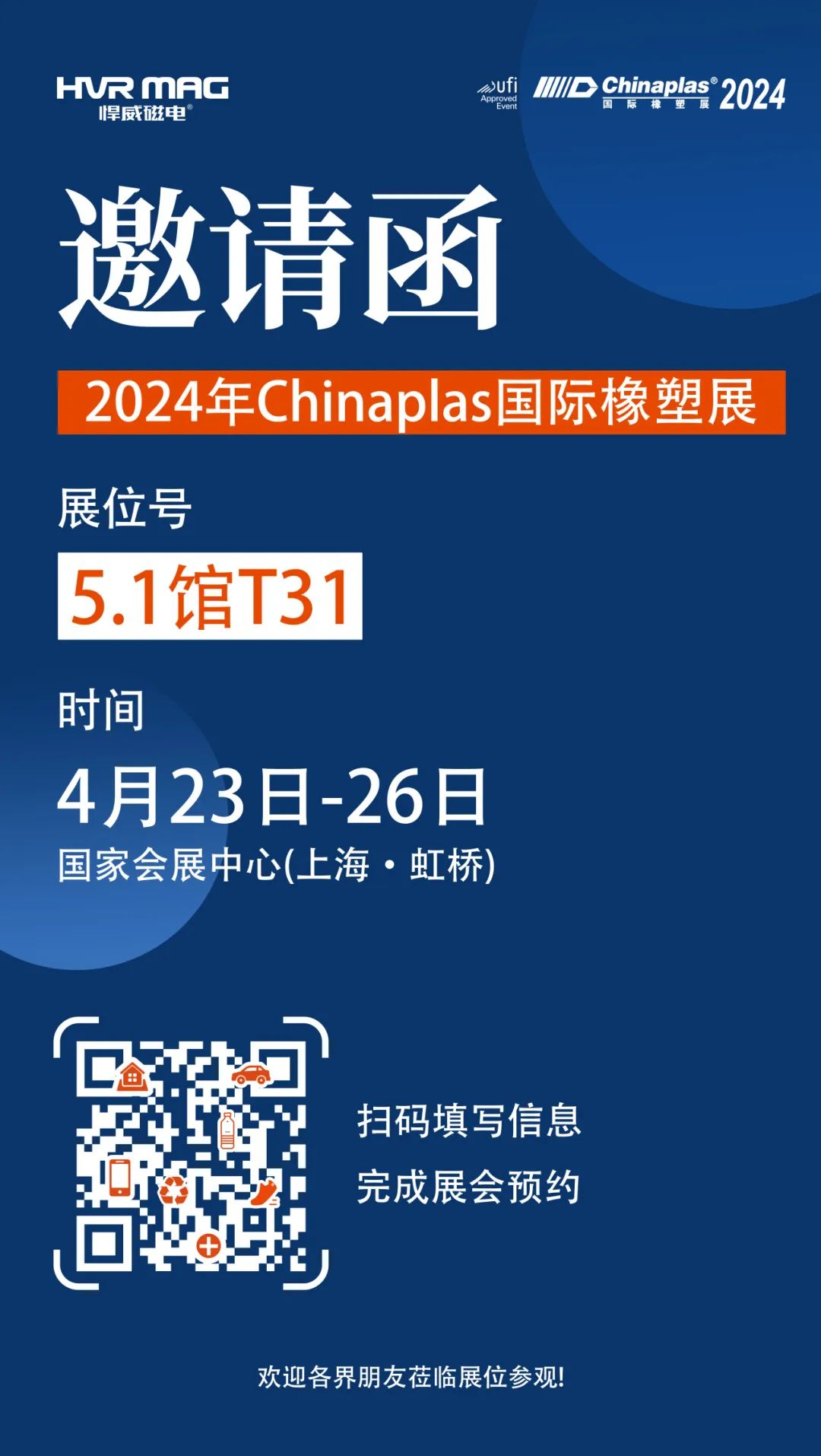 第三十六屆中國(guó)國(guó)際橡塑展會(huì)將于2024年4月23日-26日在上海虹橋國(guó)際會(huì)展中心舉行。悍威磁電將攜電永磁快速換模系統(tǒng)亮相本展會(huì)。我們?cè)?/span>5.1館T31恭候您的光臨。