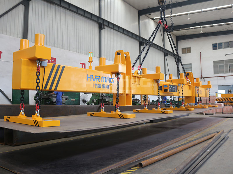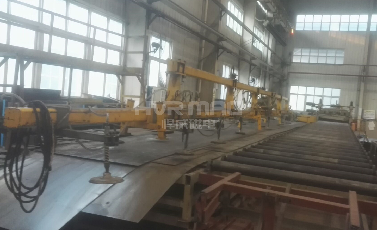 通過改進整體技術方案,悍威磁電用32個電永磁鐵的吊裝方案吊裝16米長的薄鋼板,開創了國內最長薄鋼板吊裝案例的先河。