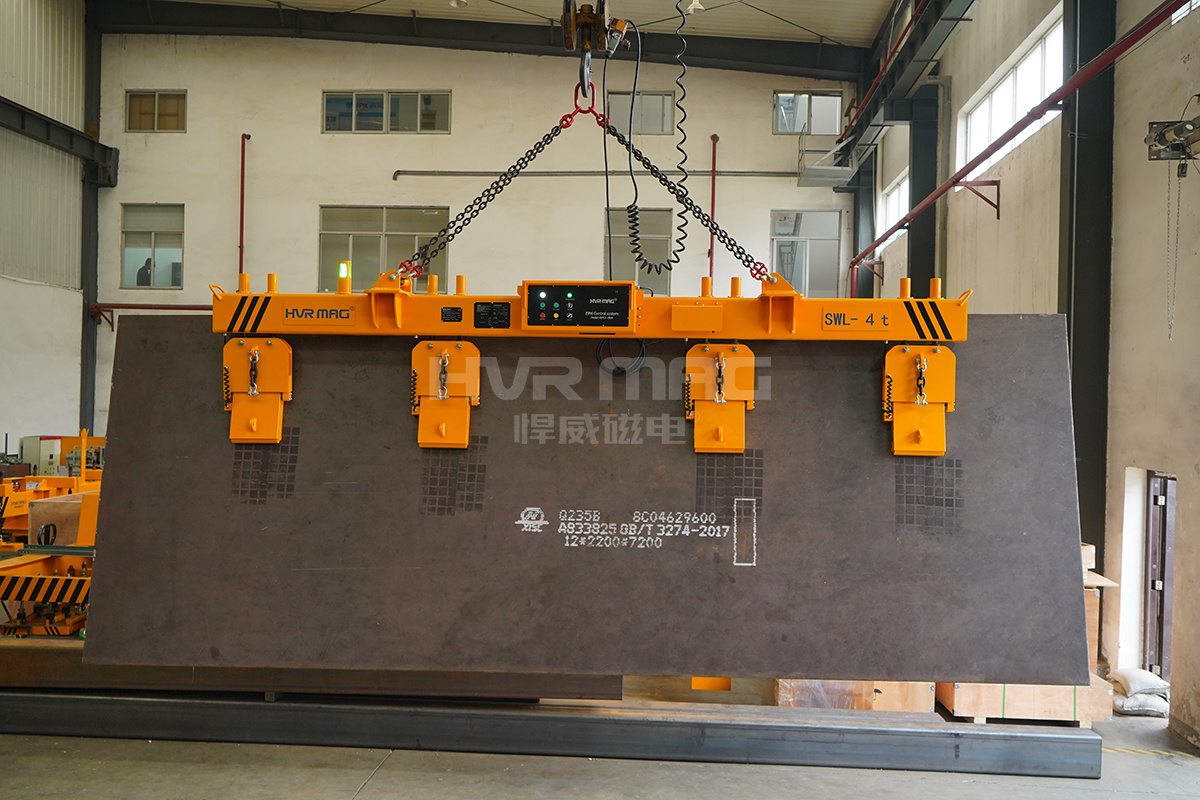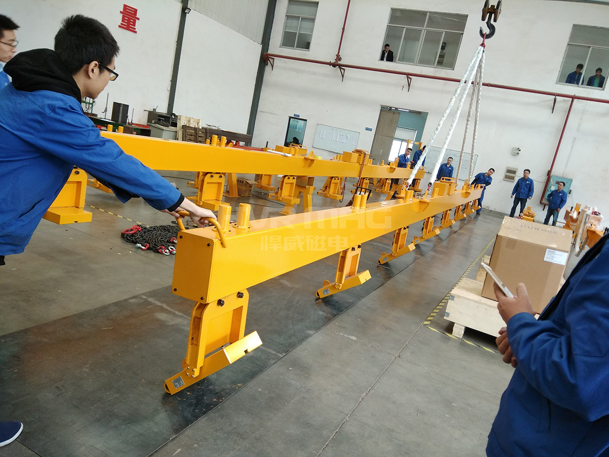 另外悍威磁電在對所有出廠、出口的產品都試行嚴格的試吊監測,為什么要進行試吊呢?因為試吊既測試了實際加工生產出來的側吊型鋼板磁力吊具的性能是否達到預期,又順便檢測了該吊具地電氣系統工作情況,為終端客戶的最終使用增添一份保障。