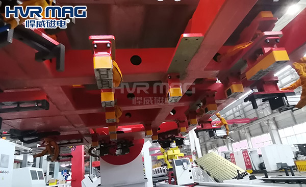 4、電永磁鐵配套機器人搬運工件上下料,減少人工成本和勞動強度,減少工傷事故發生的幾率,并且明顯可以提高工作效率。