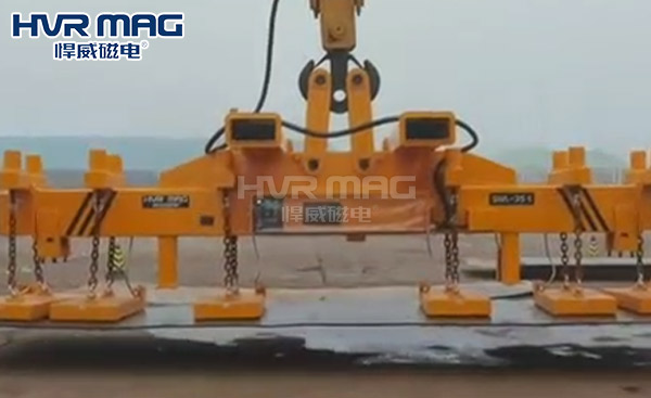 悍威磁電與該港口企業通過詳細的溝通確定了所要的電永磁吊具的種類,通過定制化方案根據實際應用的需求設計多張鋼板電永磁吊具方案。該項目主要是解決客戶多張吸單張放的問題,除了可以搭配門式起重機外還能配合叉車使用,不同搬運方式適合多種需求。