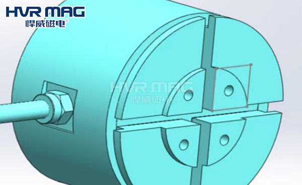 剛開始接到這個(gè)訂單的時(shí)候我們也為難在哪個(gè)方向去吸,由于種類太多,搬運(yùn)的時(shí)候不能碰到其他的工件,防止把其他工件一起帶起來,最終選擇吸附工件的兩端,分開工件大小選用3中大小不同的磁鐵進(jìn)行搬運(yùn),由于兩端的大小不一樣。我公司采用在磁鐵的磁極表面凸起一個(gè)凸臺(tái),這樣小的一端可以放在凸臺(tái)上,大的一端可以放在旁邊上。利用3個(gè)磁鐵搬運(yùn)全部的工件,在搬運(yùn)的時(shí)候旁邊的工件就算和磁鐵比較近,由于電永磁鐵的特性,在不接觸的情況下磁力傳達(dá)非常的小,完全避免了會(huì)干擾旁邊工件??蛻舭徇\(yùn)的的效果也是杠杠的。
