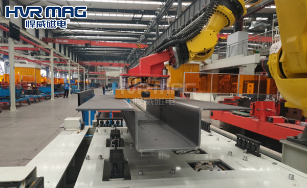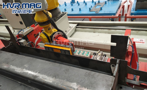 在采用悍威磁電自動(dòng)化電永磁鐵進(jìn)行自動(dòng)化搬運(yùn)上下料之后,該客戶采用的是人工搬運(yùn)材料,人工進(jìn)行組對焊接產(chǎn)品。整個(gè)工序效率較低,需要多人進(jìn)行加工,而隨著疫情的持續(xù)影響,人工成本上漲,招人困難等等問題,嚴(yán)重影響了焊接效率,為了企業(yè)長期經(jīng)營考慮,該企業(yè)經(jīng)過多方面調(diào)研后覺得采用電永磁鐵加機(jī)器人的方式來替換傳統(tǒng)的人工搬運(yùn)方式。
