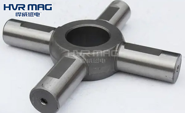 解決方案:由于十字軸提供吸附面積為圓形,所以本次采用一個外形設(shè)計成直徑40mm的圓形電永磁鐵來配合桁架機械手進行搬運十字軸,可提供20KG額定吸力,設(shè)計安全系數(shù)為4倍,最大拉脫力達到80kg,確保在搬運作業(yè)中有足夠的吸力來克服翻轉(zhuǎn)說來帶的摩擦力,保證作業(yè)時的安全,從而保證不掉工件。