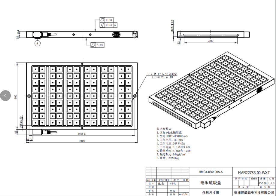 株洲悍威磁電的電永磁吸盤是采用模塊化設計,能適用于各種機床行程和各類機加工零件,其本身結構也是由株洲悍威磁電數控加工中心一體式加工,滿足吸盤高剛性和高強度的要求,適應于高精度產品的加工。我們在此歡迎各行各界進行指導交流。