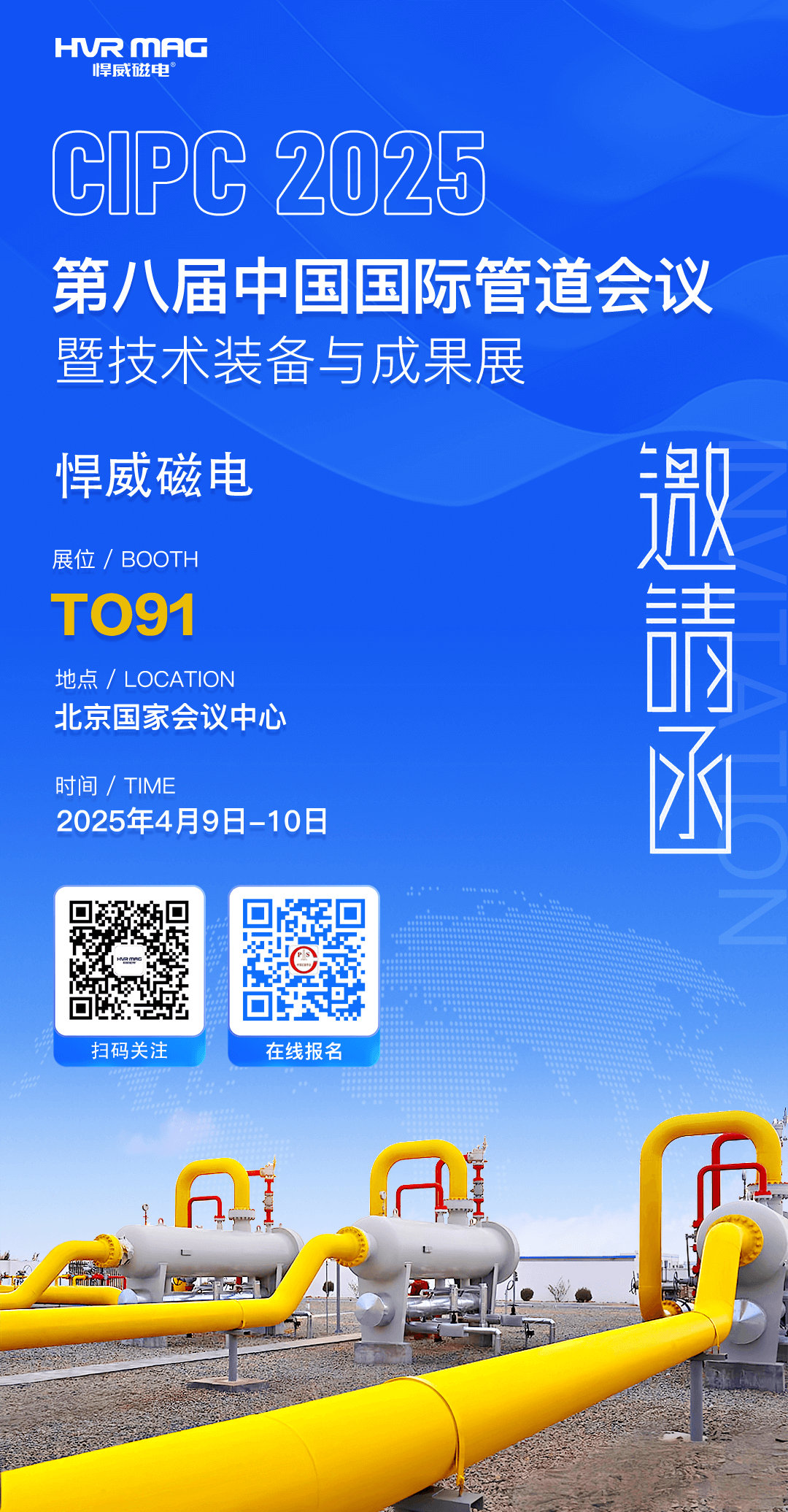 悍威磁電誠摯邀請您蒞臨TO91展位,深入了解我們的電永磁鐵、電永磁吊具如何快速吊裝鋼管、鋼板等工件,這些智能磁力起重吊具將為油氣管道輸送行業帶來全新的體驗。