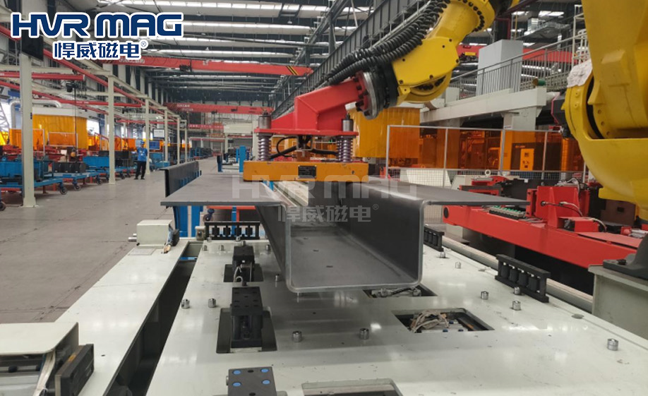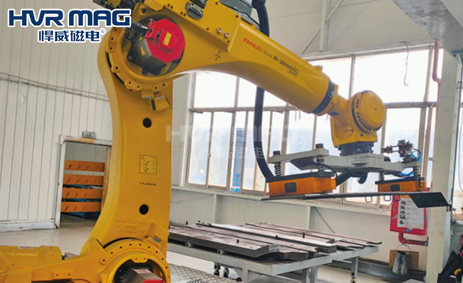 隨著工業(yè)4.0的深入,自動(dòng)化發(fā)展水平越來(lái)越高,大部分企業(yè)放棄費(fèi)時(shí)費(fèi)力的人工搬運(yùn),轉(zhuǎn)而使用機(jī)械手吸盤(pán)作為主要設(shè)備來(lái)搬運(yùn)板材,完成自動(dòng)化送料、接料等等搬運(yùn)動(dòng)作。自動(dòng)化機(jī)械手電永磁吸盤(pán)在搬運(yùn)過(guò)程中非常精準(zhǔn)、省時(shí),下面跟隨小編了解悍威磁電自動(dòng)化機(jī)械手電永磁吸盤(pán)在搬運(yùn)板材上的優(yōu)勢(shì)吧。