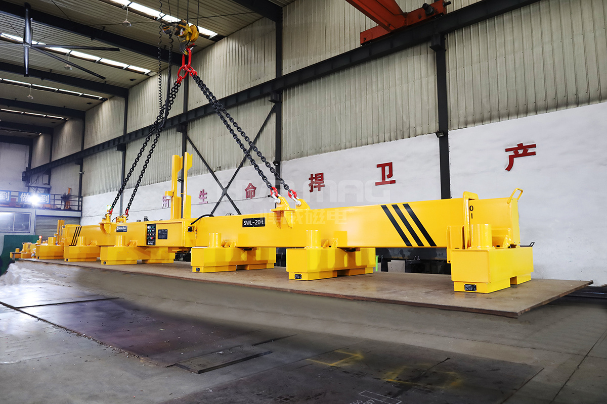 其實,悍威磁電設計伸縮梁電永磁吊具的初衷便是讓更多的機械加工企業安全便捷地吊運起長短不一、重量相近的中厚鋼板。因為它適合鋼板長度范圍變化較大的工況,客戶在選購過程中,建議根據自身的實際情況(鋼板的規格范圍和行車的起重能力)選擇最佳的電永磁吊具。如果您對悍威磁電的伸縮梁電永磁吊具感興趣或有疑問,歡迎聯系我們。
