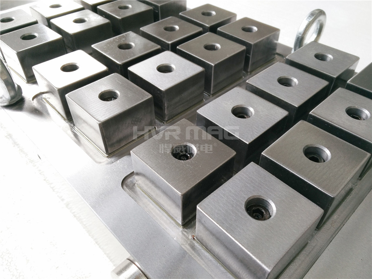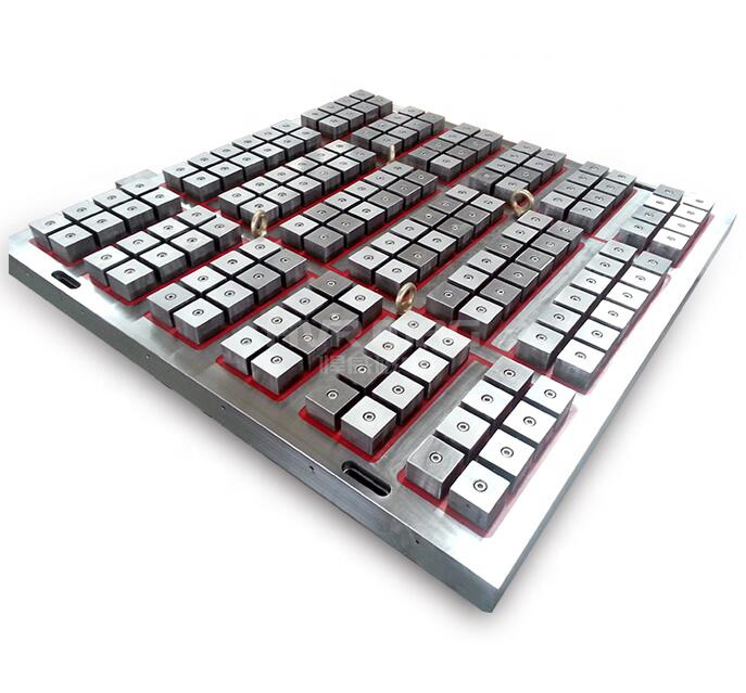 悍威磁電推薦下圖這種雙面電永磁吸盤,可以自由擺放組合,適用于多種不同尺寸的工件加工。