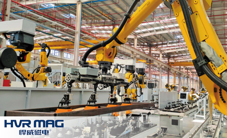 目前,大部分工業企業都在使用自動化設備進行上下料,機械手作為輔助工件進行搬運板材、接料等。因為機械手自動化上下料十分精準高效,徹底改變了以往用人工或者夾具時所遇到的搬運難題。但你知道為何在自動化上下料過程中需要用到電永磁吸盤?今天,悍威磁電為你詳細講解電永磁吸盤在自動化上下料過程中的重要性。