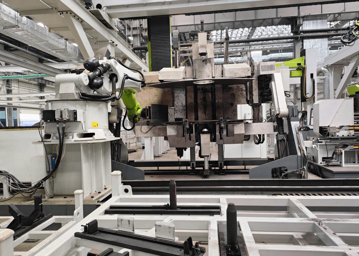 本套機器人搬運工裝采用型號為HEPMP-5221P70X35-YD定制電永磁鐵單臺用,用一套HEPC21-100A電永磁控制器控制,滿足大挖臂組對的圓弧鋼板、側面鋼板和轉軸等多種工件通用(重量最大500公斤)的上料搬運。