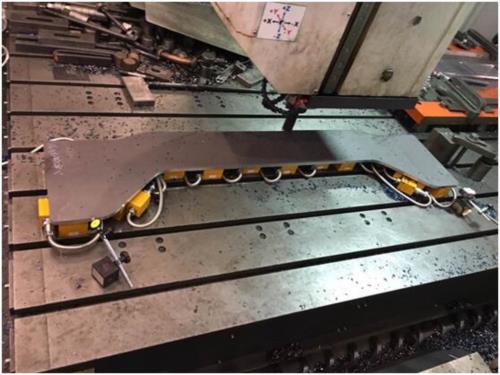 悍威針對客戶需要,設計用多臺DYCX-1408P50-SM雙面電永磁吸盤組合使用替代原有夾具,每臺吸盤都上下兩面均有磁力,單面最大吸力640kg,可自由組合擺放,用于不同工件加工,相對傳統電永磁吸盤大大節約了采購成本。且裝配時間遠低于傳統卡具用時,相對傳統卡具壓板,節約了打壓板上螺絲時間,充退磁時間小于2S,只需控制器按鍵操作,工人勞動強度低,極大提升了生產效率。